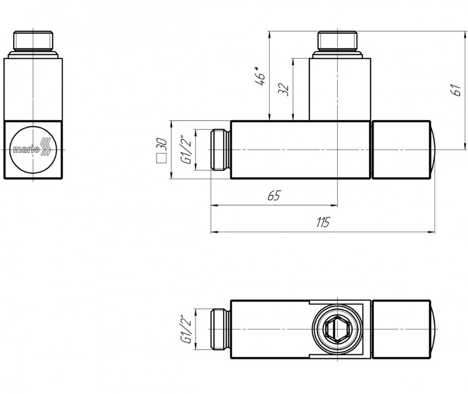 Кран кутовий для сушки для рушників Mario квадрат G1 / 2 "