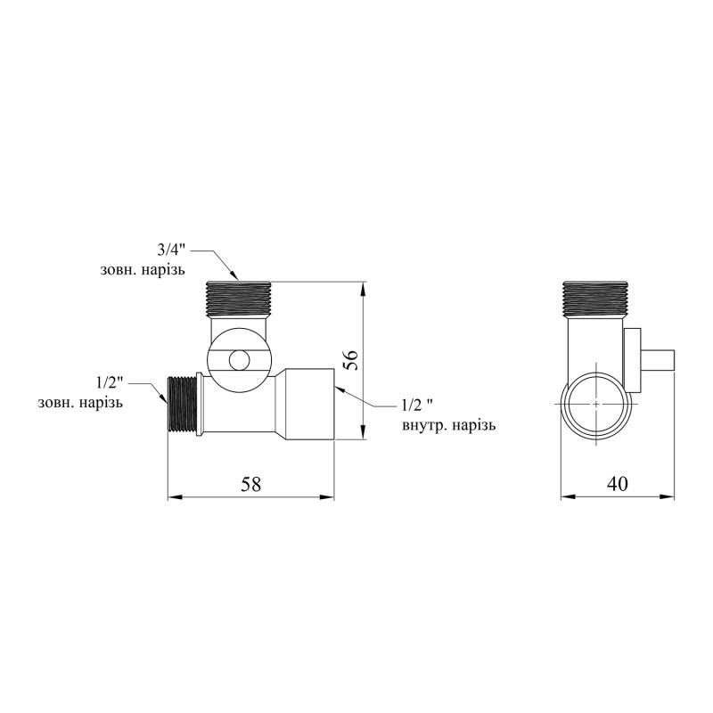 Кран приладовий Kroner KRP Eckventil C103 ½''х¾''х½'' ЗЗВ нержавіюча сталь CV027378