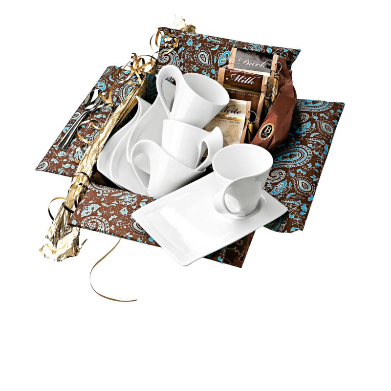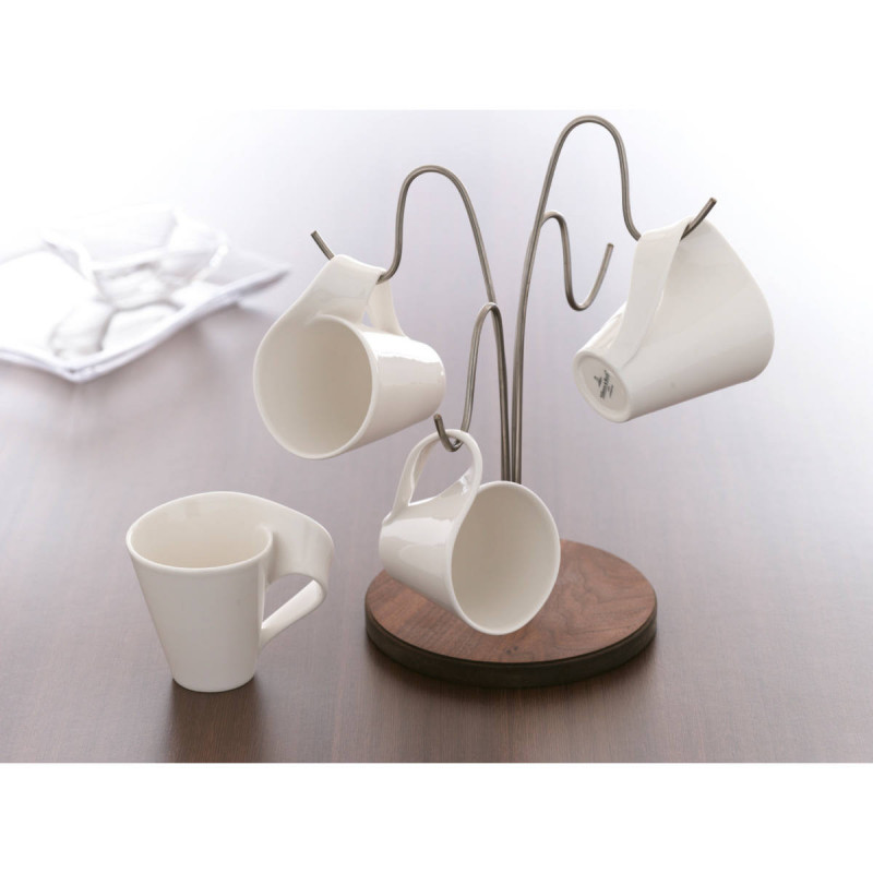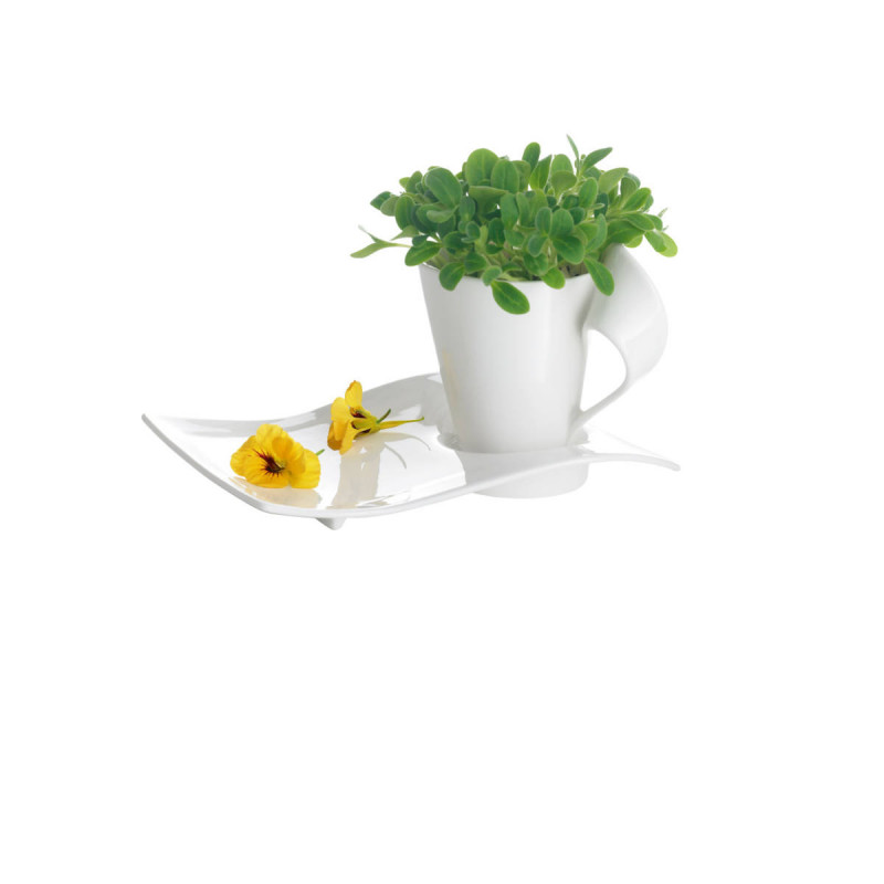 Caffè насолоду улюбленим напоєм стане ще і естетичним задоволенням. Чашки різних форм для всіх популярних видів кави виготовлені з тонкого фарфору преміум-класу, їх можна використовувати в мікрохвильовій печі і мити в посудомийній машині. Елегантна посуд для кави з колекції NewWave Caffè відрізняється оригінальною вигнутою формою, яка виробляє особливо сильне враження завдяки мінімалістичному дизайну. Чашка стоїть на зігнутому у вигляді хвилі великому блюдце, на якому можна ефектно розмістити невелике ласощі, наприклад кекс або круасан.