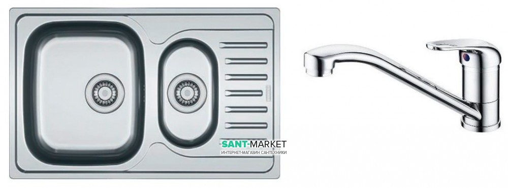 Кухонна мийка Franke Polar PXL 651-78 декор і змішувач Narew 35 Plus нержавіюча сталь