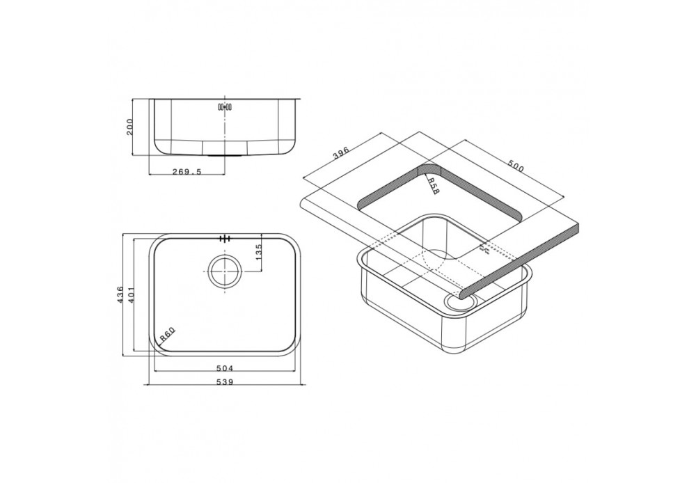 - Розміри мийки (ШхГ): 539 х 436 мм