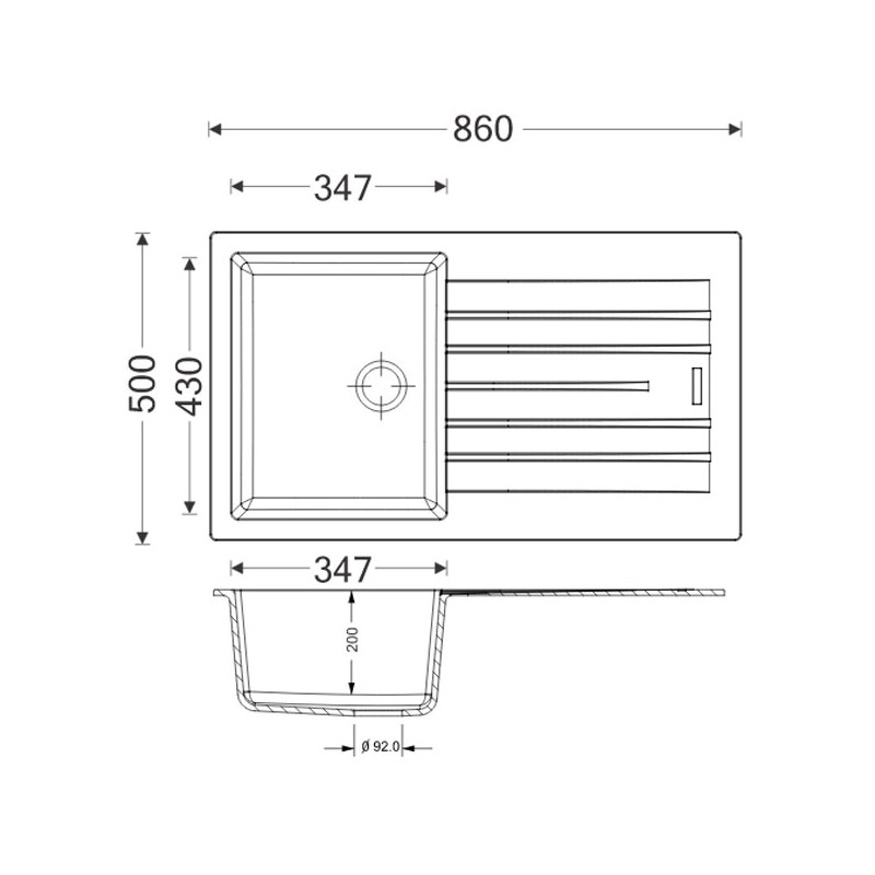 - Розміри мийки (ШхГ): 860 х 500 мм