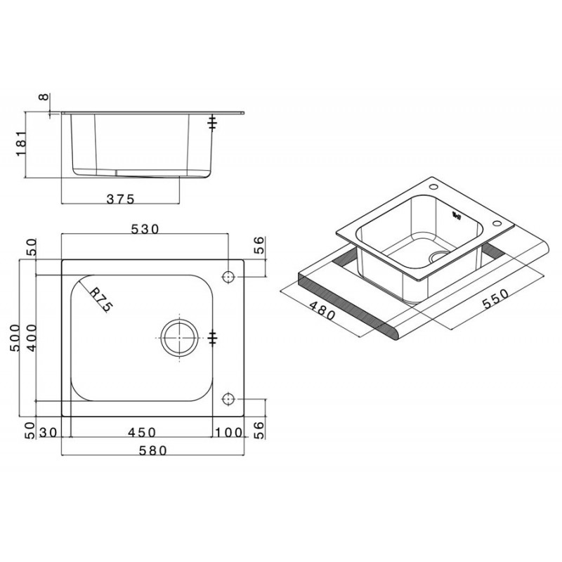 - Розміри мийки (ШхГ): 580 х 500 мм