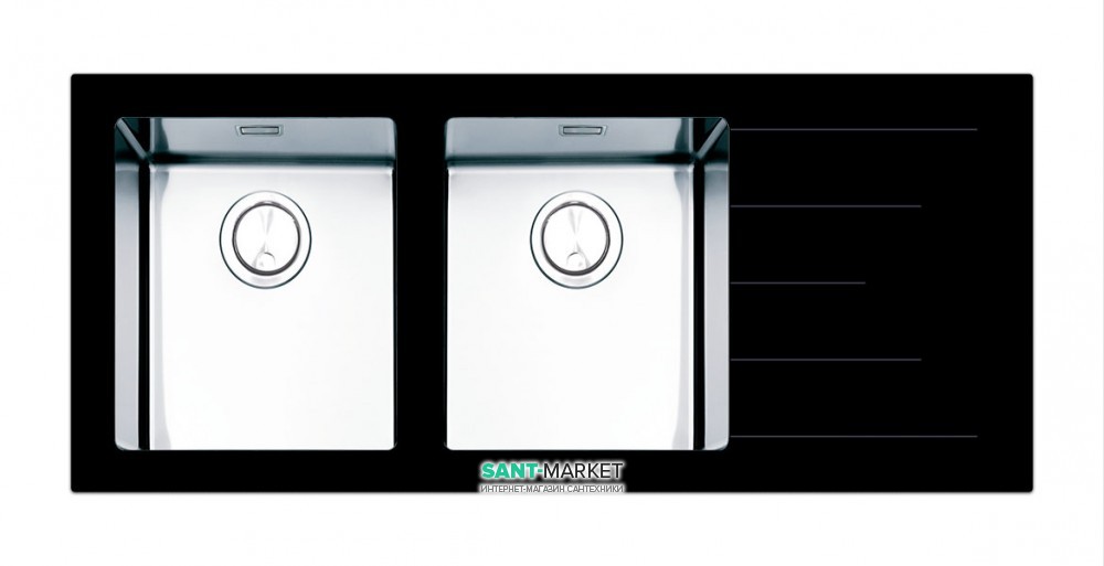 Кухонна мийка прямокутна на дві чаші фронтальна частина чорне скло pop-up механізм Apell Pura нержавіюча сталь PU1162IRBC