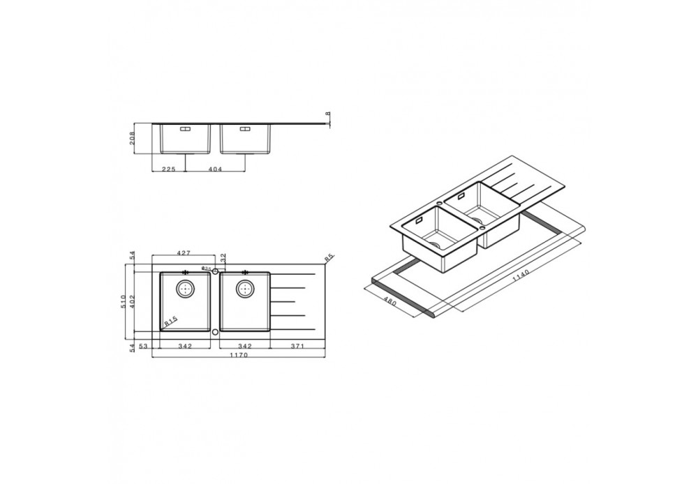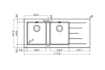- Розміри мийки (ШхГ): 1170 Отримати х 510 мм