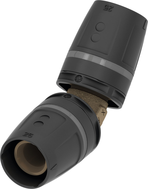 Це компактний фітинг, що легко приєднується. Його висока ударна міцність обумовлена комбінацією високоякісного пластику PPSU® та армованого волокном поліаміду.
