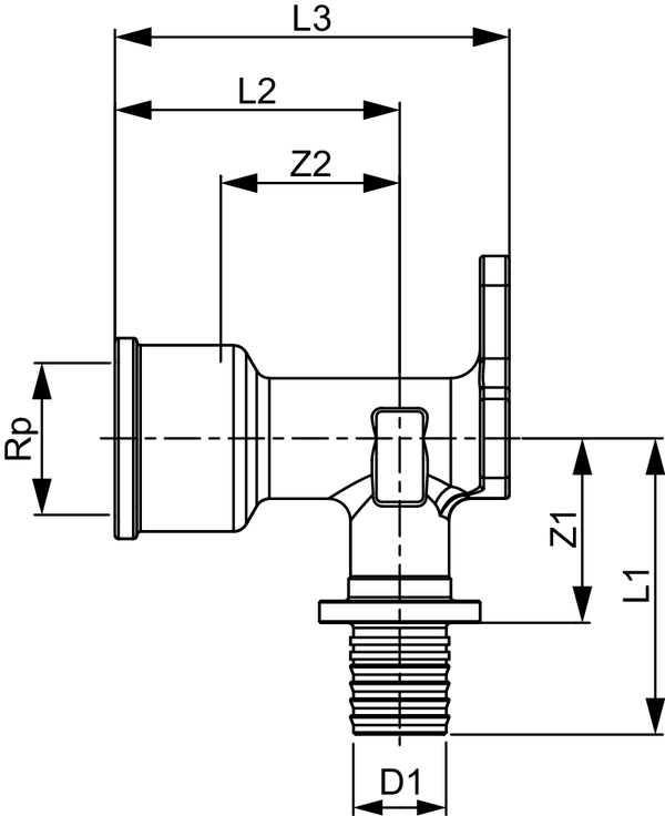 Кутник настінний Tece TECEflex довжина випускних отворів 54 мм 16х1/2'' латунь 768503