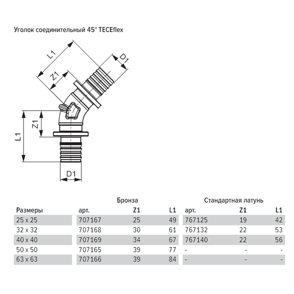 Кутове з'єднання TECE TECEflex 45 ° 50х50