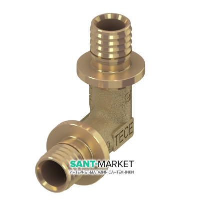 Кутове з'єднання TECEflex Прес-фітинг Teceflex куточок з'єднувальний 90 ° латунний застосовується як з'єднувальний елемент при монтажі трубопровідних систем водопостачання холодної та гарячої води, різних систем опалення(Радіаторне, водяна тепла підлога) з металопластикової труби або поліетиленової труби, зокрема із зшитого поліетилену (PEX-с).