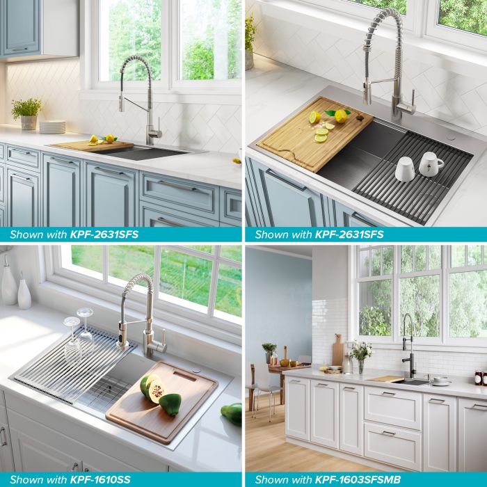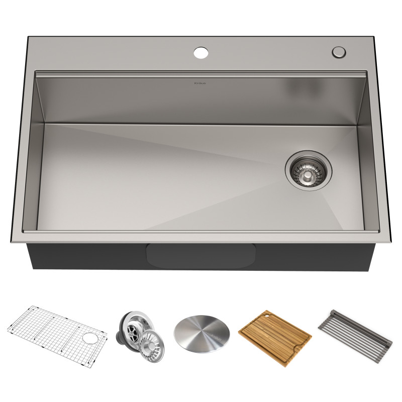 Зробіть більше з Kore™ - ідеальною раковиною для сучасного домашнього шеф-кухаря. Натхнена професійними кухнями, робоча станція Kore™ миттєво перетворює вашу кухонну раковину напідготовчу станцію з повним обслуговуванням. Ця фермерська раковина з вражаючим плоским дизайном спереду створює осередок з характерним сучасним виглядом. У комплекті з високоякісними аксесуарами, такими як універсальна підставка для сушіння посуду та бамбукова обробна дошка, вбудована система виступів дозволяє мити та сушити, а також подрібнювати та нарізати скибочками, не втрачаючи жодного дюйма простору. Виготовлена із нержавіючої сталі 16-го калібру, є однією з найміцніших і довговічніших раковин на ринку. Удосконалений сучасний та натхненний кулінарією дизайн – це миттєва модернізація будь-якої домашньої кухні. Підніміть функціональністьвашої кухонної раковини на абсолютно новий рівень із серією WORKSTATION Kore ™ та відчуйте різницю Kraus.