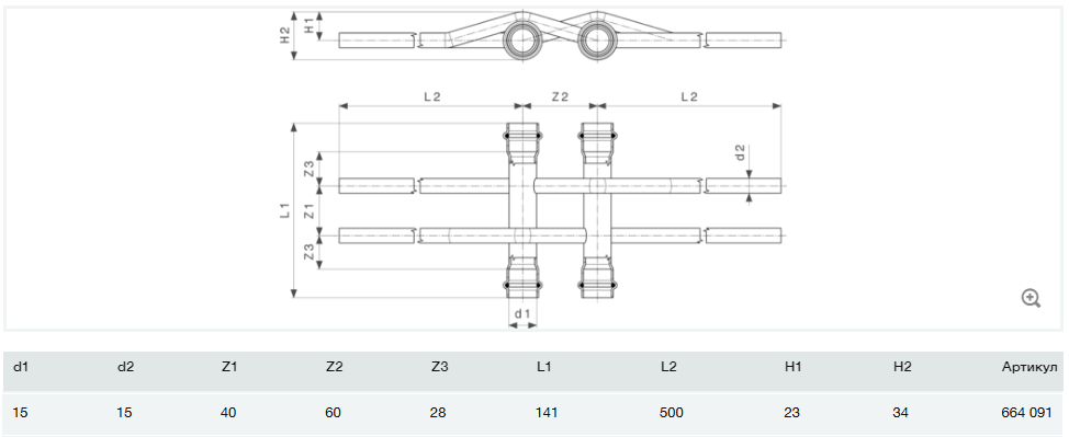 1) Лінійний колектор Viega Prestabo 1149.7 15х15 нелегована сталь