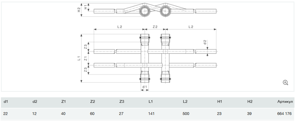 1) Лінійний колектор Viega Prestabo 1149.7 22х12 нелегована сталь