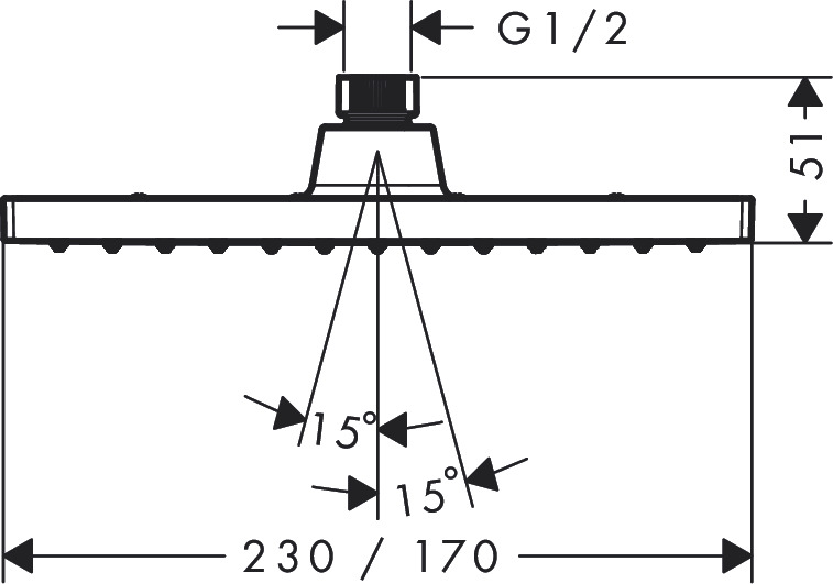 1) Лейка для верхнього душа Hansgrohe Vernis Shape EcoSmart 230х170 мм 1-режимна