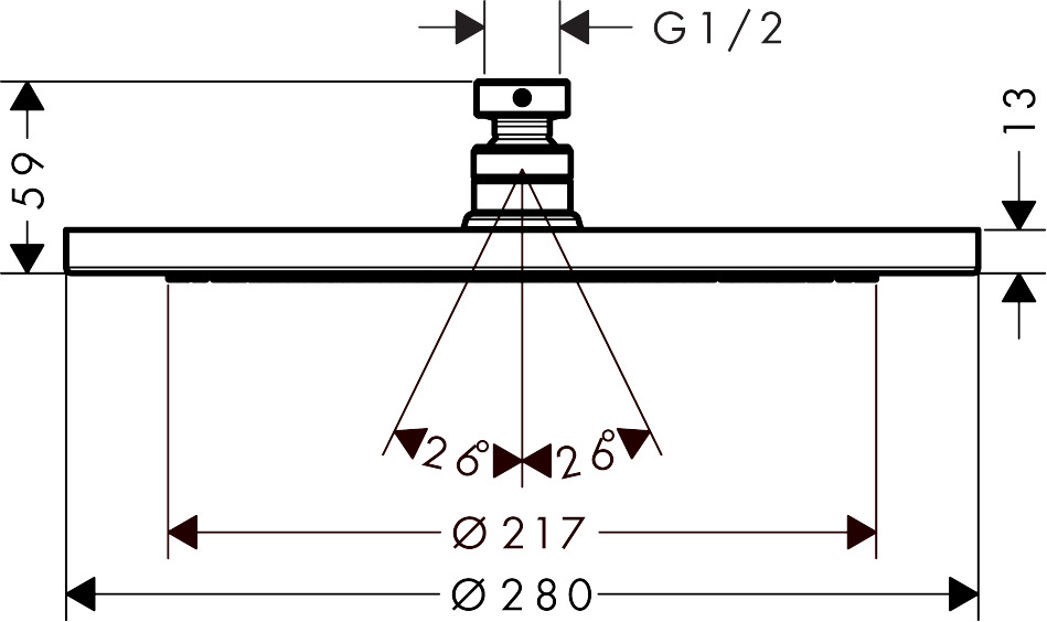 Лейка для верхнього душа з тропічним душем Hansgrohe колекція Croma 1jet EcoSmart 280 мм хром 26221000
