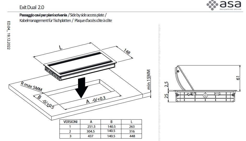 Лючок до столу ASA Plastici Exit Dual 2.0 пластик алюміній 040.020.00001