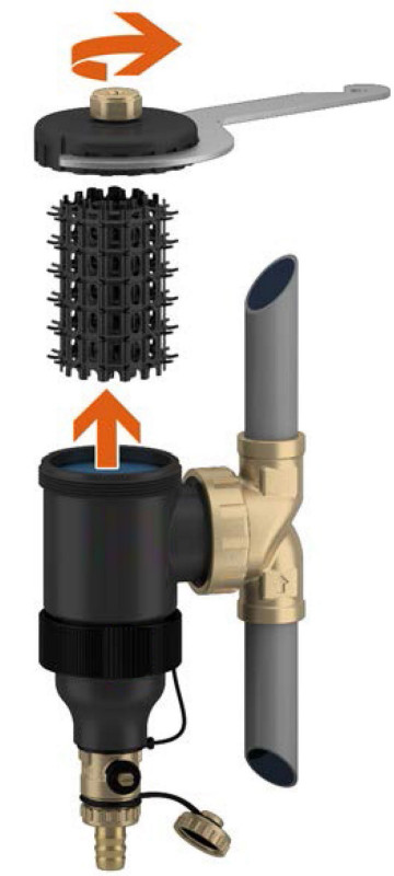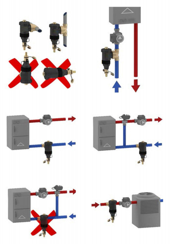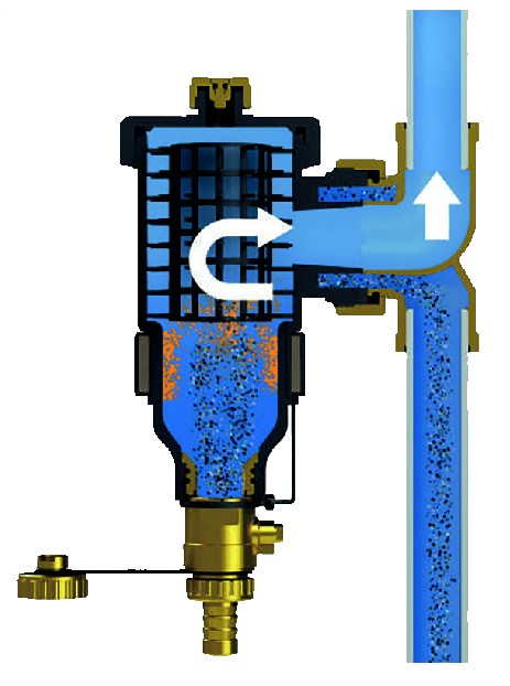 В закритій циркуляційній системі опалення та кондиціонування повітря домішки в теплоносіях можуть призвести до зносу та руйнування водяного насоса, клапана та інших компонентів системи. Ці домішки можуть забивати теплообмінники, виходи радіаторів та труби, знижуючи теплову ефективність системи. Магнітний фільтр відокремлює домішки від теплоносія, особливо якщо це стосується піску та іржі. Ці домішки осідатимуть у камері для збору домішок після їхнього відокремлення, що збільшить період очищення системи. Осілі частинки можна буде видалити (злити) під час нормальної роботи системи, не зупиняючи її. На відміну відтрадиційних фільтрів, магнітний фільтр забезпечує збирання частинок іржі. Це особливо важливо для конденсаційних котлів та енергоефективних насосних систем. Магнітний фільтр оснащений магнітним кільцем, що знімається, яке при очищенні фільтра легко дозволяє видаляти металеві домішки. Фільтр можна встановлювати як на вертикальних, так і на горизонтальних ділянках труб.