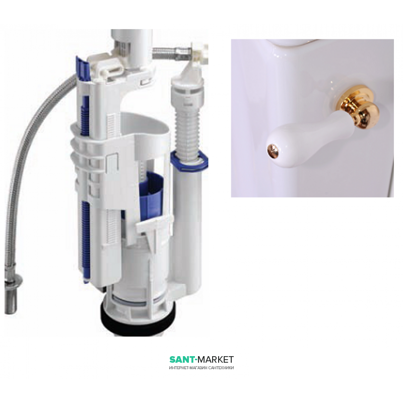 Механізм зливу для низького бачка Kerasan Waldorf / Retro з бічною ручкою білий / золото
