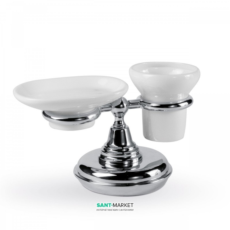 1) Мильниця і стакан для зубних щіток Tres Retro-Tres з настільним утримувачем кераміка / метал білий / хром