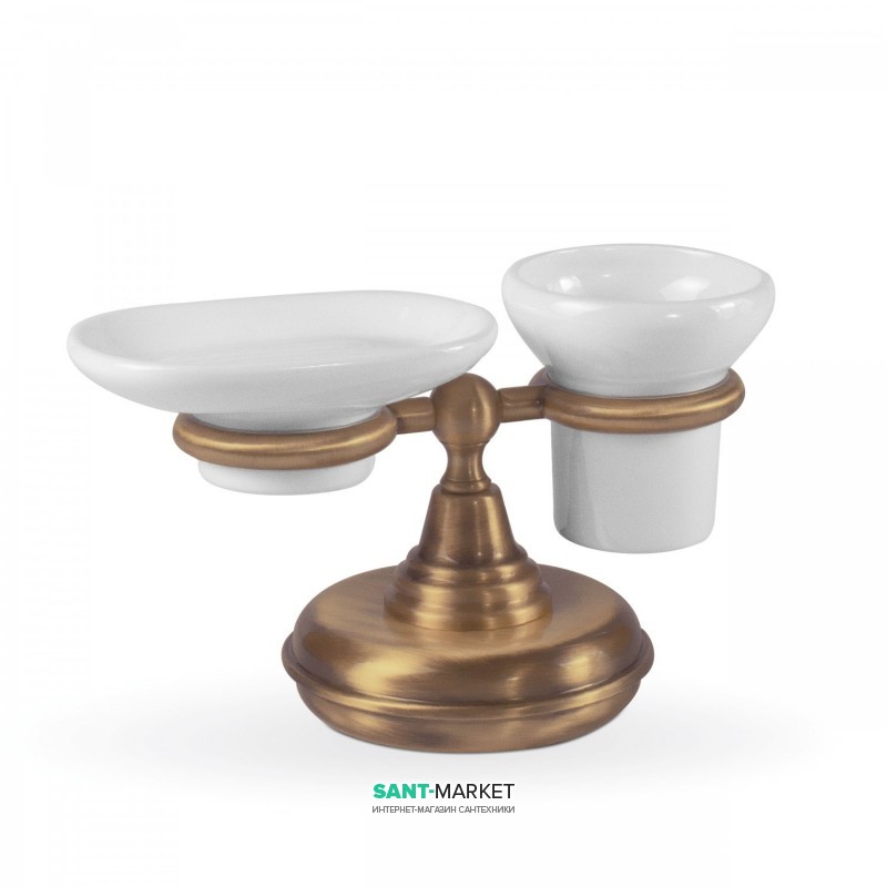 1) Мильниця і стакан для зубних щіток Tres Retro-Tres з настільним утримувачем кераміка / метал білий / состаренная латунь матовий