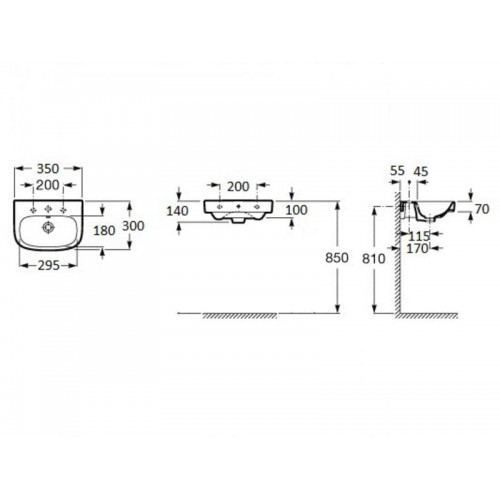 1) Міні-раковина для ванної підвісна Roca Debba 35х30 з одним отвором під змішувач кераміка білий