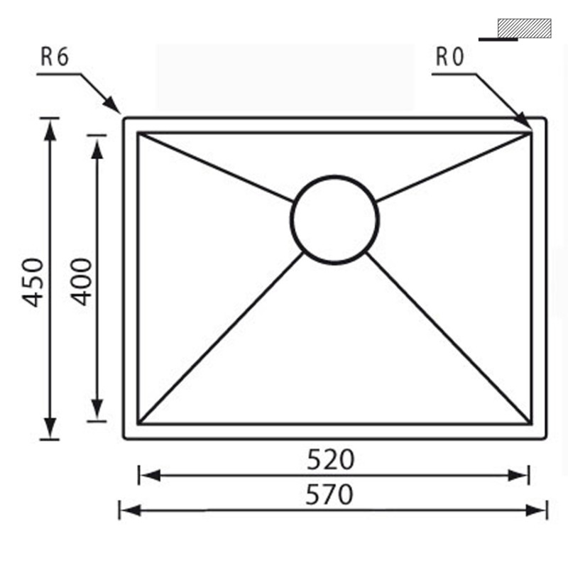 Миття для кухні CM Filoquadra 57Х45 см Sottotop нержавіюча сталь 11918