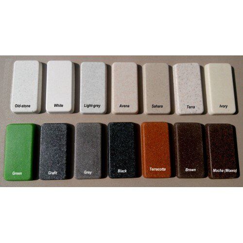 Штучний межі т приємний на дотик і завдяки пористій структурі легко і швидко чиститься від будь-яких забруднень, включаючи фарбу і жир.Випускають переважно врізні мийки з граніту.