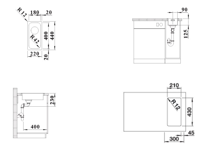 Мийка для кухні Blanco Solis 180-IF 22х44 см врізна нержавіюча сталь 526114