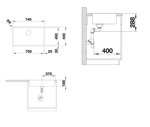 Мийка для кухні Blanco Zerox 700-IF 74х44 см врізна темна сталь