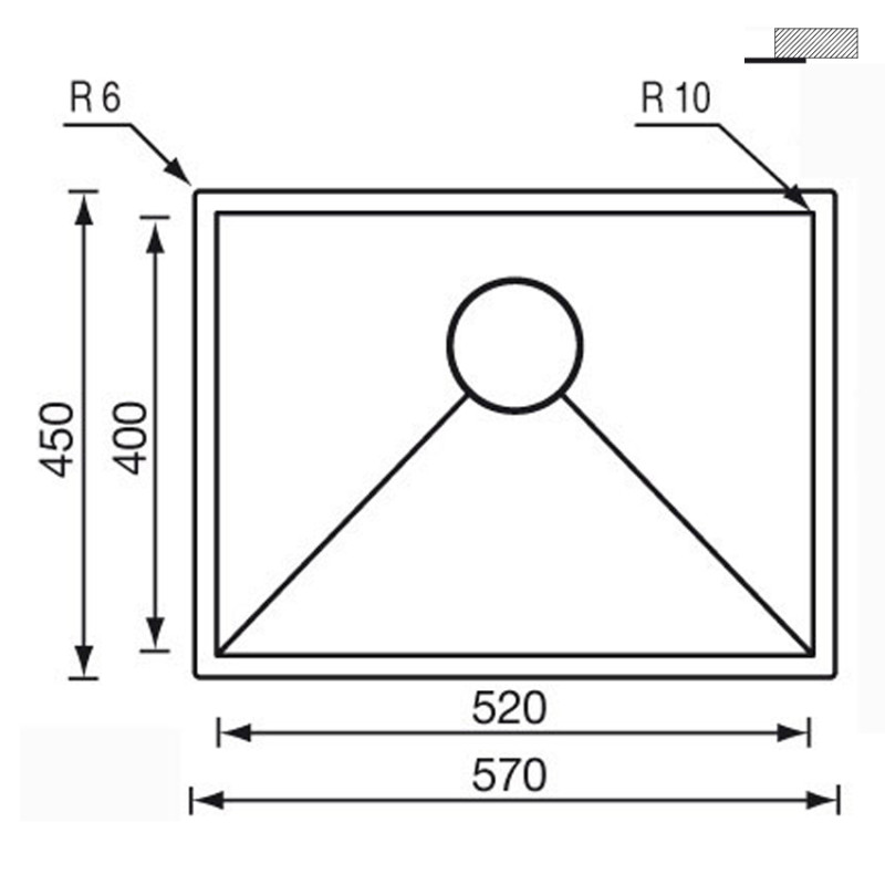 Мийка для кухні CM Filoraggiato 57Х45 см sottotop нержавіюча сталь 12008