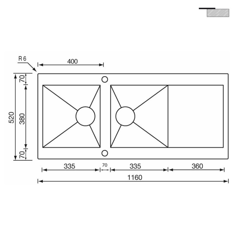 Мийка для кухні CM Revers 116Х52 см подвійна нержавіюча сталь 12987