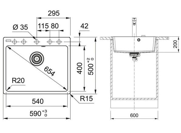 Мийка для кухні Franke Centro CNG 610-54 59х50 см Fragranite мигдаль 114.0630.408