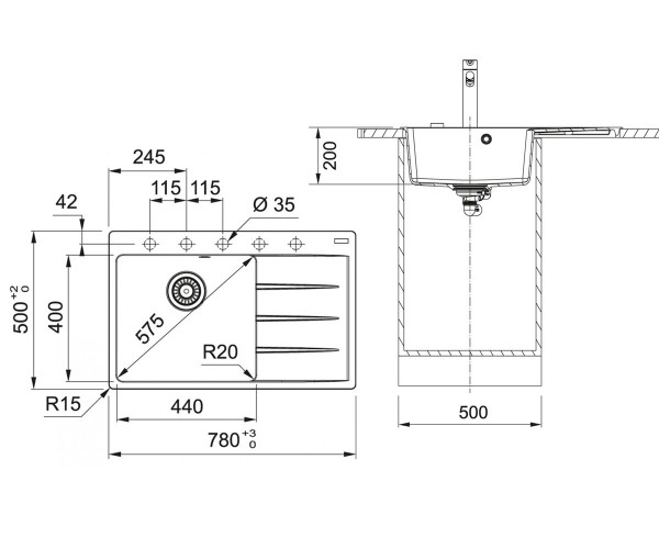 Мийка для кухні Franke Centro CNG 611-78 TL 78х50 см Fragranite білий 114.0630.473