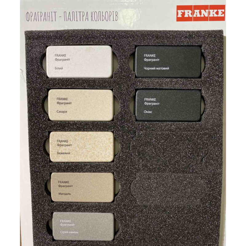 Кухонні мийки Франке з кольоровою поверхнею на піку моди, оскільки вони створюють особливу атмосферу та затишок на кухні. Міцність кольорових кухонних мийок Franke, забезпечена композиційним матеріалом, що використовується для їх виробництва (з'єднання з переважно природних матеріалів з формотворчим акрилом) Fragranit. Кухонні мийки з Fragranit дуже міцні, не псуються під впливом різних кислот і лугів, що застосовуються в домашньому господарстві.