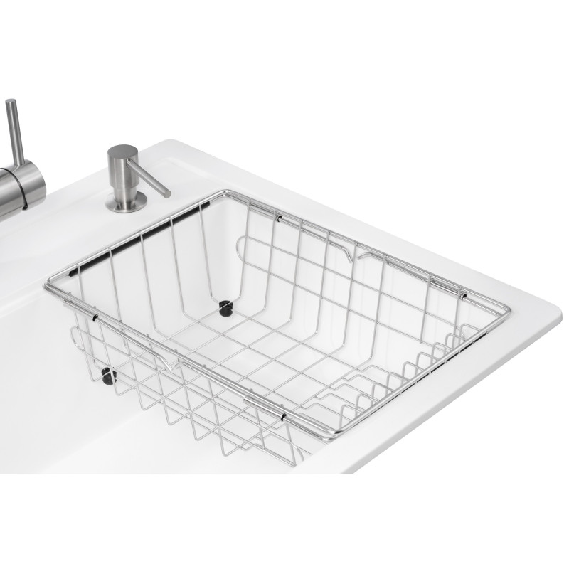Змішувач із висувним виливом — найкраще рішення для GRANADO Artes, адже потік води легкийнаправляйте в усі кути раковини. Особливо зручно мити овочі в металевому кошику GRANADO, що входить до складу кухонної станції. До речі, в кошик можна покласти і щойно вимитий посуд, щоб вода з нього стікала прямо в раковину. Компактний контейнер розгортається до максимального розміру 530*245*120 мм.