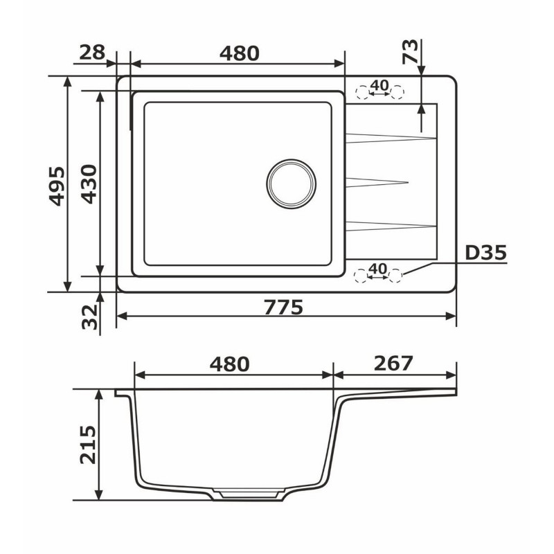 У містку чашу 480*430 мм легко поміститься велика кількість їжі або великий посуд. Широке крило має канавки спеціальної форми для кращого відтоку води. Для цієї ж мети дно кухонної мийки має спеціальний дизайн.