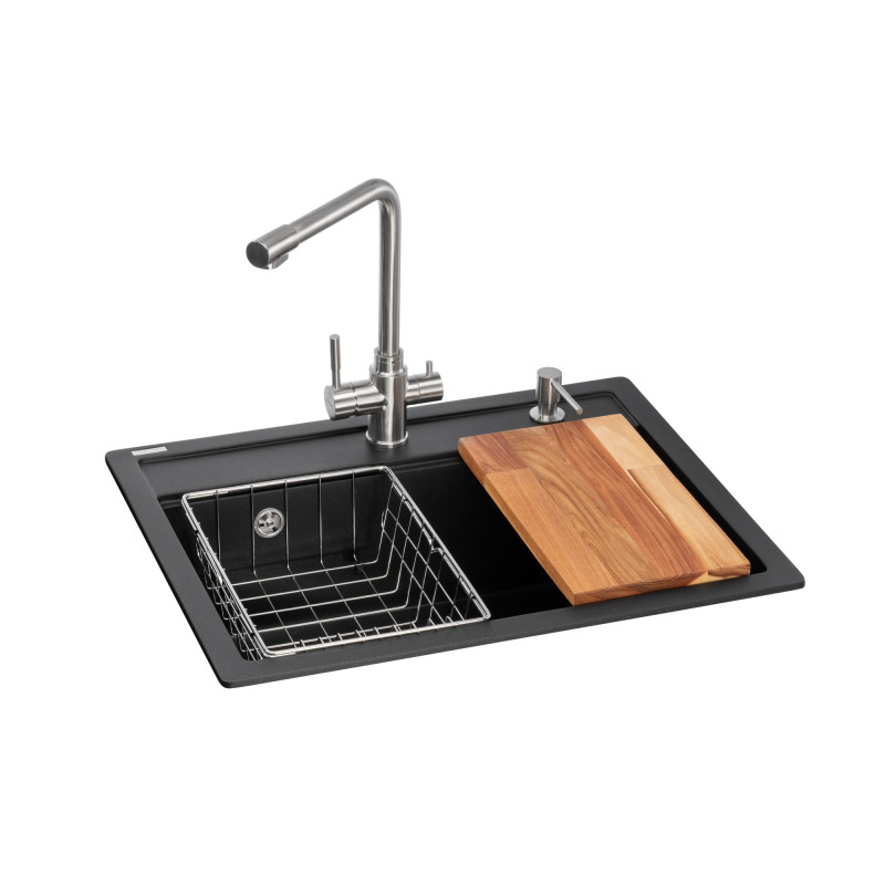 Мийка для кухні Granado Optimal Artes 65х49,7 см із змішувачем та аксесуарами нанограніт black shine ksg1201