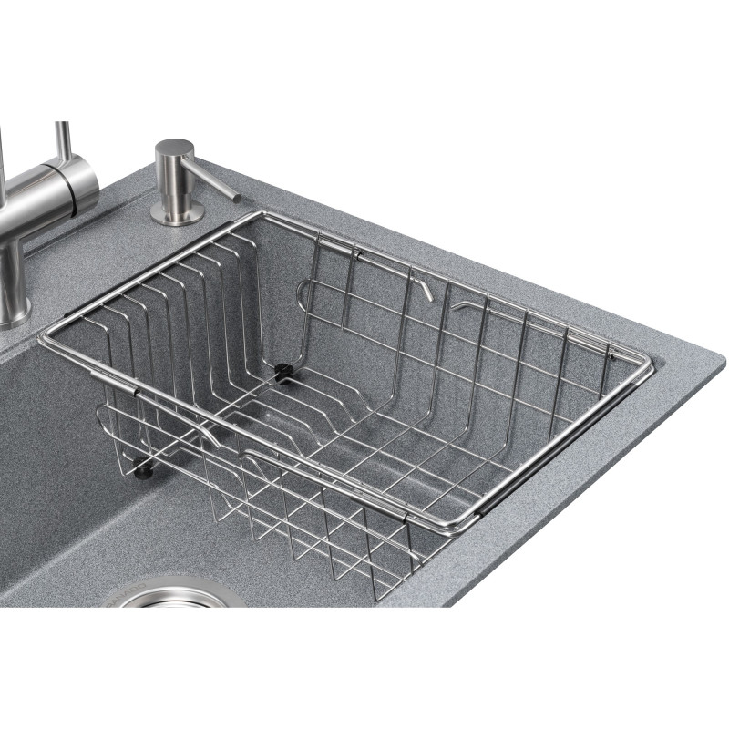 Але що у вас завжди буде під рукою, так це дерев'яна обробна дошка та металевий кошик GRANADO, розміри яких можна регулювати від 350*245*120 мм до 530*245*120 мм.