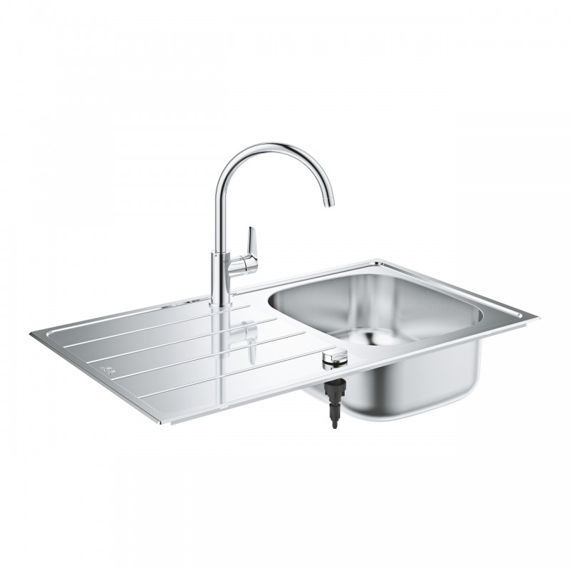 Оновлення свою кухню з легкістю за допомогою комплекту кухонного миття і змішувача GROHE Bau, що поєднує в собі високоякісну, міцну мийку і ідеально підходить змішувач BauEdge в одному комплекті.