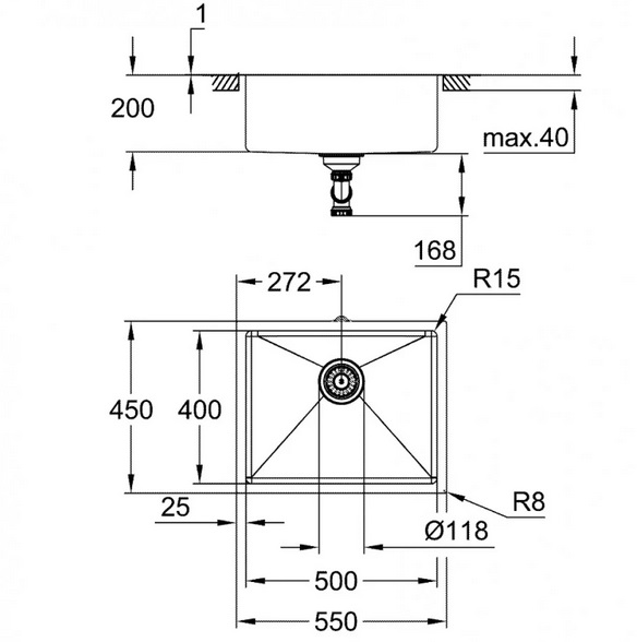 Мийка для кухні Grohe К700 55х45 см під стільницю нержавіюча сталь графіт темний