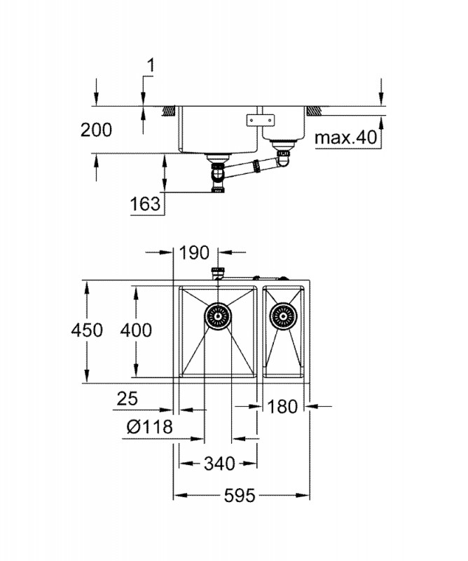 1) Мийка для кухні Grohe K700 59,5х45 см нержавіюча сталь матова