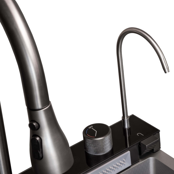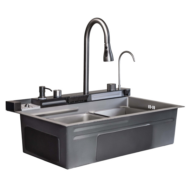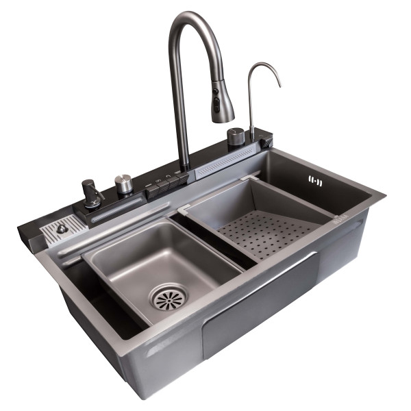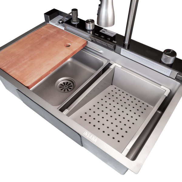 Мийка для кухні Insana Karafa 75х45 см з переливом нержавіюча сталь grey gun А0056979