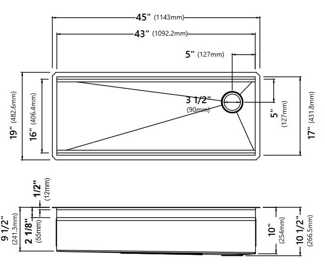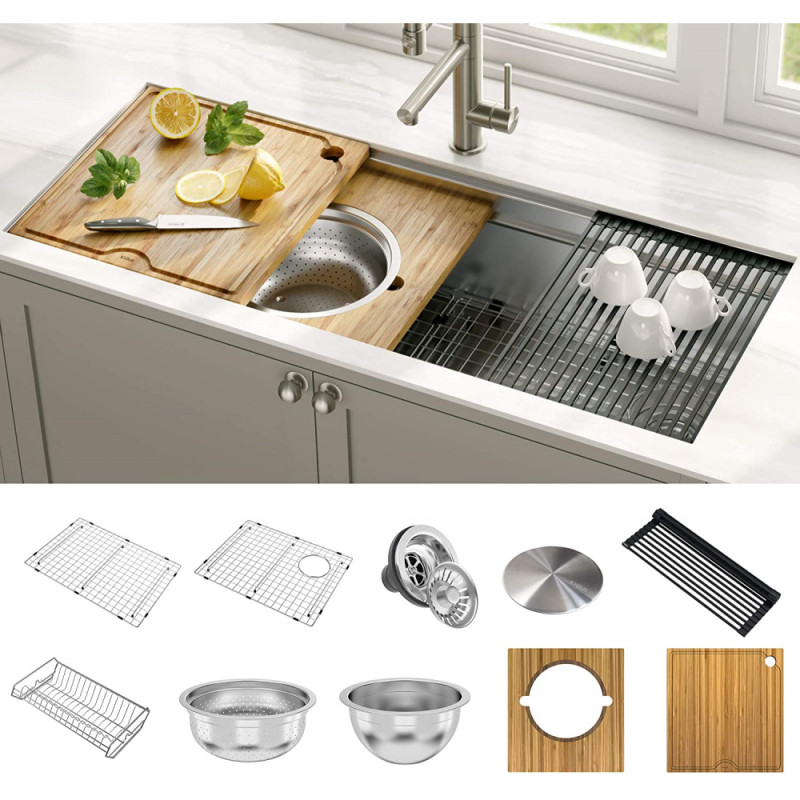- 45-ДЮЙМОВА ЧАША: вражаюча велика і глибока раковина з кутами малого радіусу та зміщеним отвором для зливу створює суцільний робочий простір для миття вашого найбільшого посуду