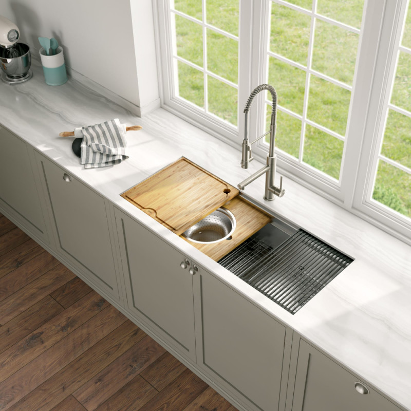 - ВИКЛЮЧНА КОНСТРУКЦІЯ,яка збільшує цінний робочий простір, дозволяючи вам працювати прямо над раковиною та ідеально підходить для кухні будь-якого розміру