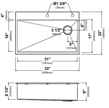 - Виготовляється з TRU16, найтовстішої нержавіючої сталі на ринку, ця надміцна мийка має високу стійкість до корозії та вм'ятини