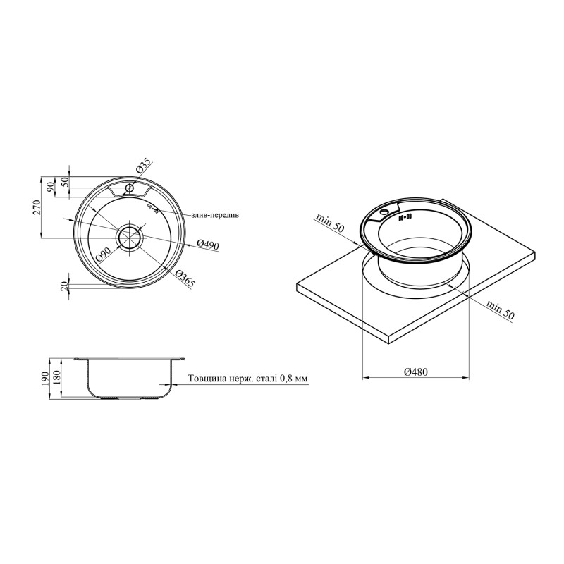 Мийка для кухні Kroner KRP Dekor-49008180 ⌀49 см нержавіюча сталь CV022765