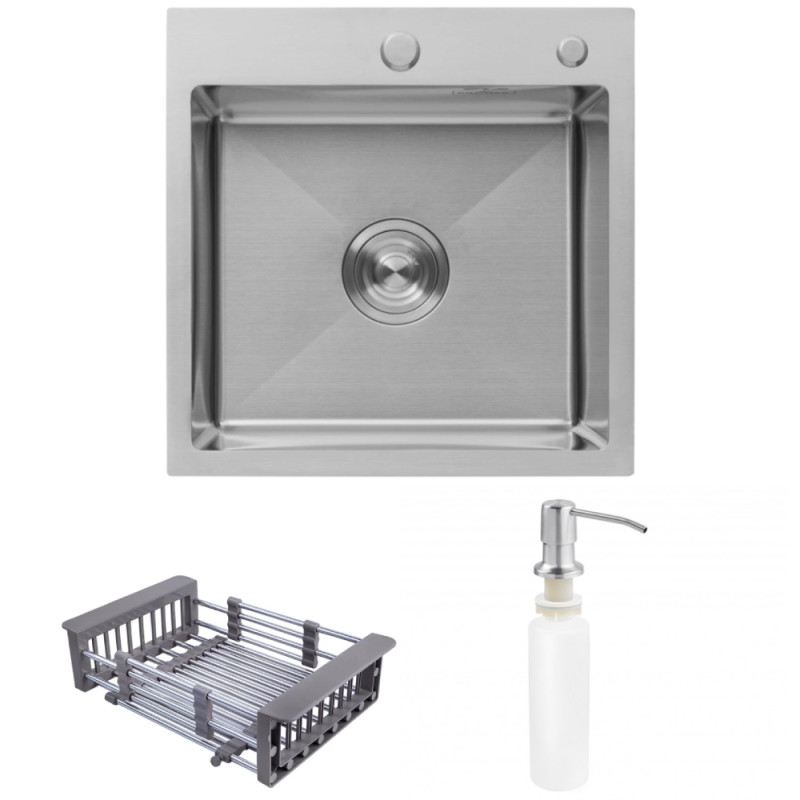 Мийка кухонна Kroner KRP Gebürstet-4545HM 45x45 см з дозатором і зливом, нержавіюча сталь