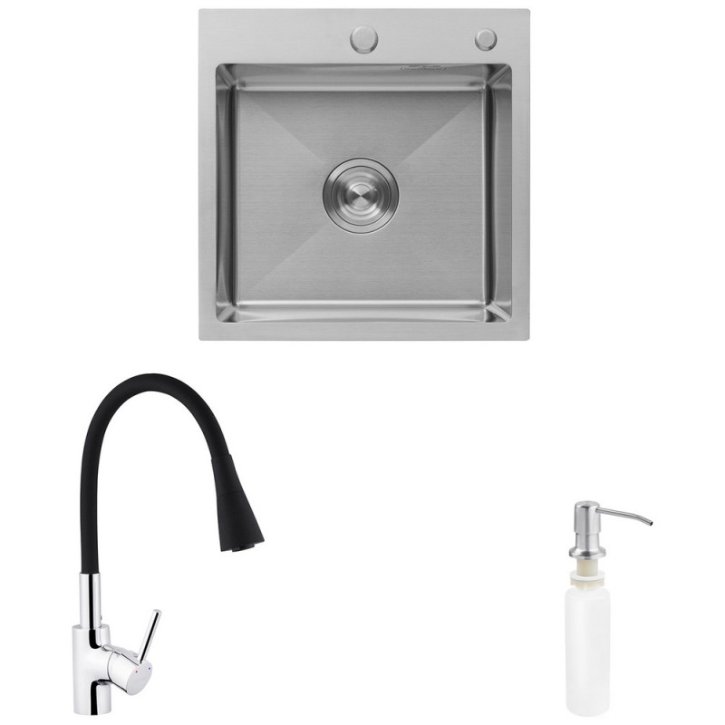 Мийка для кухні Kroner KRP Gebürstet-5050HM 50х50 см із змішувачем та дозатором нержавіюча сталь CVS30109