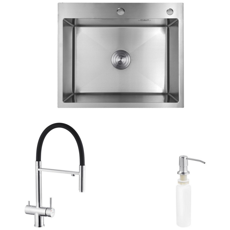 Мийка для кухні Kroner KRP Gebürstet-6050HM 60х50 см із змішувачем та дозатором нержавіюча сталь CVS29810