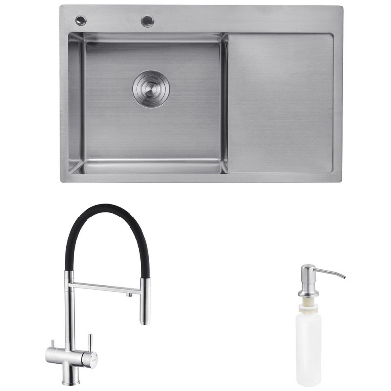 Мийка для кухні Kroner KRP Gebürstet-7849LHM 78х49 см із змішувачем та дозатором нержавіюча сталь CVS30107