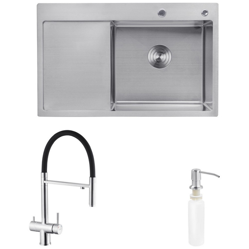Мийка для кухні Kroner KRP Gebürstet-7849RHM 78х49 см із змішувачем та дозатором нержавіюча сталь CVS30106
